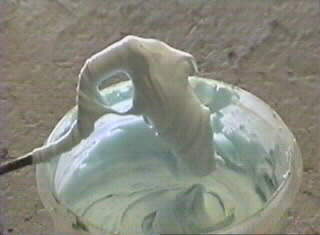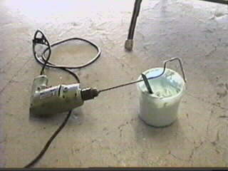 Throughout the entire project I have used SuperFil from Poly Fiber. It works great as long as you mix it properly. I think people that have problems with soft spots are just to lazy to mix it thoroughly, this includes me! So I rigged up this little mixing apparatus and I whip the SuperFil until it is uniform in color and is as soft as icing from a cake. I have yet to have soft spots or any other problems using SuperFil when mixing it in this fashion.