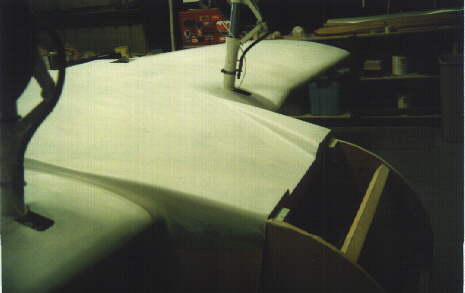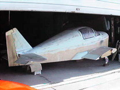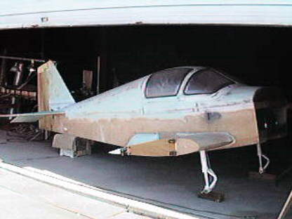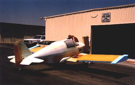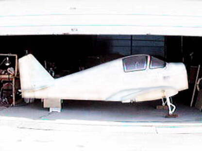 Here is the fuselage sitting in its new home. I leased a hanger at Chino airport in Chino California. As you can see more filling and sanding have been done on the upper decks and the stub wings are now done.