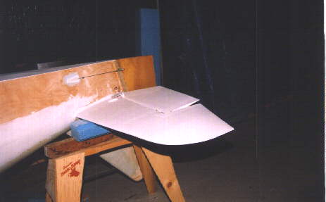 Back on her feet again. I have the large polystyrene blocks glued to the ends of the wings which will eventually become wing tips. I like carving and shaping polystyrene foam a lot better than urethane.