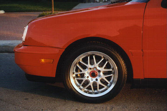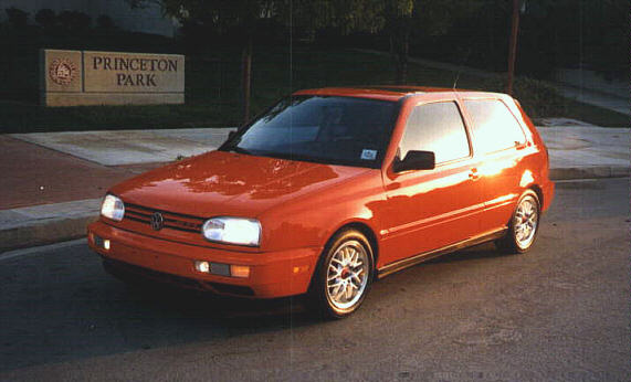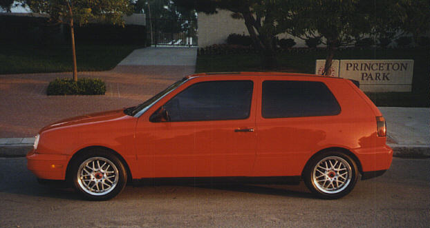 Here is the other toy that takes time away from my airplane building! Its a 96 VW - GTi that has been lowered 2 inches with larger sway bars and gas struts. I installed a Q-Chip from Autotec as well as a K&N filter. With the Q-Chip the engine revs much better and the rev limiter has been moved to 6500rpm, this also bumped the top speed to over 125mph! (tested) :o) Those are 15 inch rims with 50 series tires. Its a fun daily driver!