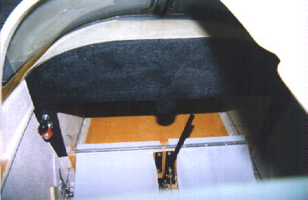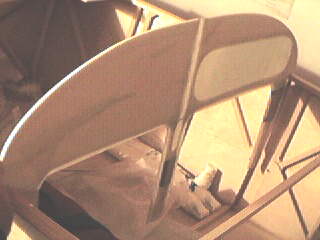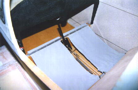 Here is a photo of the aluminum seat sling. The canvas sling from RR failed twice before I even got in the air. They seem to just come un-sewn at the seams so I made one of thin gauge aluminum and will do the same for the right side