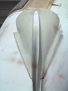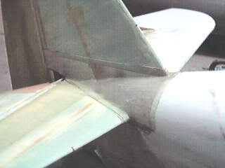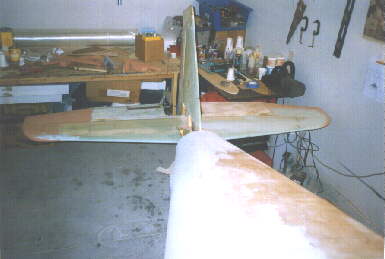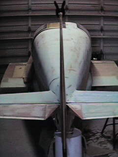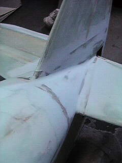 Here are a few pictures of the horizontal stab being filled and sanded along with a few pictures of the fairing that mounts in the root area of the tail surfaces. The fairing was made using the same technique that Mark Langford describes on his web site. I used three layers of 8 oz cloth and I think it just right!