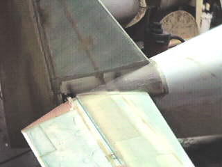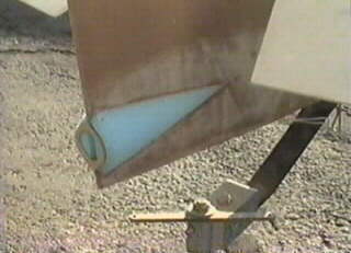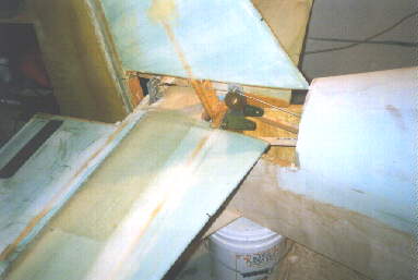 Here are a few pictures of my elevator as of Sept. 1997. As you can see I decreased the elevator area by cutting 6 inches off the tip, this puts the area somewhere between the KR2 and the KR2S. I plan add 12 inch extensions to the horizontal stab tips and fill the missing elevator area with a non-moveable piece. I did not taper my horizontal stab spars down to 5/8 of an inch so this allows me to add the 12 inch extensions without having to make them paper thin! The extra 2+ feet of area on the horizontal should increase the pitch stability and its ability to handle aft CG conditions. Enough of Mark Langford's preaching and reading Roncz's data has convinced me that even the S model has inadequate horizontal tail area. I know the old timers say it fine,.. but its not! There is no reason we cant make this bird fly like a Glassair or RV if we just follow basic aerodynamic principles.
